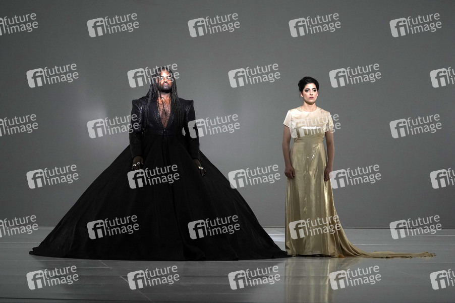 John Holiday und Susan Zarrabi bei der Fotoprobe der Oper 'Echnaton' unter der Regie von Barrie Kosky in der Komischen Oper Berlin im Schillertheater. Berlin, 12.03.2025