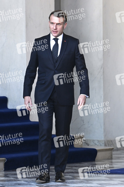 Emmanuel Macron beim Treffen der Koaltion der Willigen zu Beratung über die militärische Unterstützung für die Ukraine im Élysée-Palast. Paris, 06.01.2026