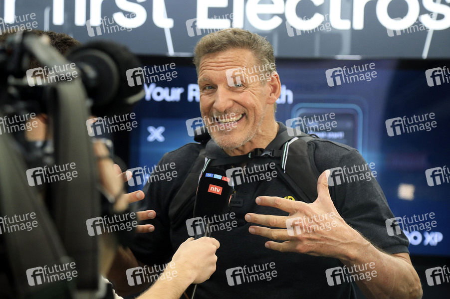 Ralf Moeller bei der Präsentation der Weltneuheit 'SUITX' am Stand des Medizintechnikunternehmens Ottobock auf der Hannover Messe 2025 auf dem Messegelände. Hannover, 31.03.2025