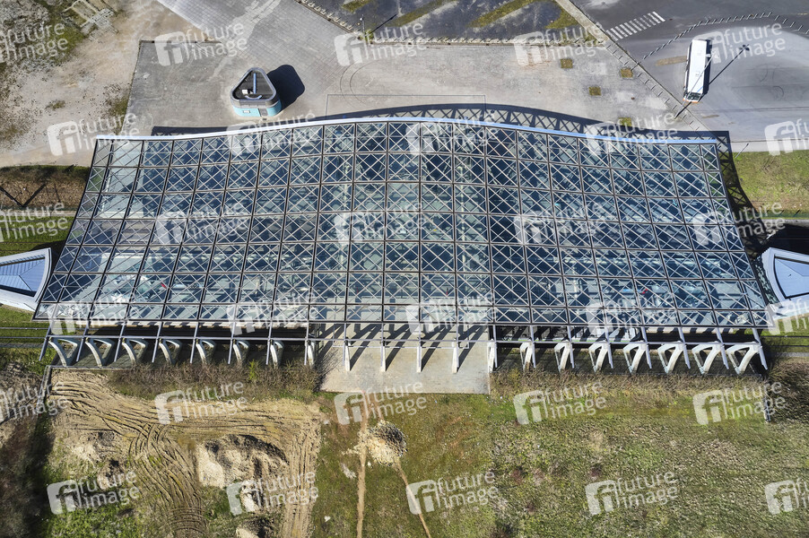 Luftbild, Expogelände, Expo-Park Hannover, Expo 2000, U-Bahn, üstra, GVH, Großraumverkehr, Haltestelle, Endhaltepunkt der Stadtbahn-Linie 6, Messe Hannover, Haltestelle Messe/Ost