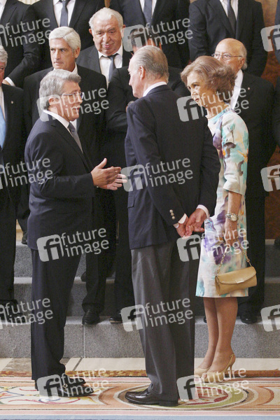 König Juan Carlos und Königin Sophia empfangen Spieler und Funktionäre von Atletio Madrid im Palacio de la Zarzuela, Madrid