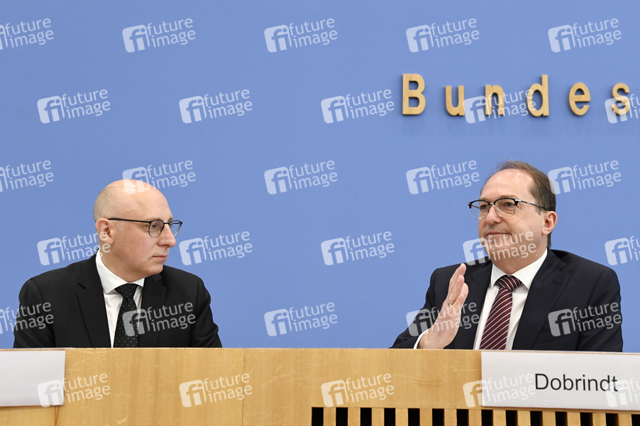 Sinan Selen und Alexander Dobrindt bei der Bundespressekonferenz 'Vorstellung des Verfassungsschutzberichtes 2024' im Haus der Bundespressekonferenz. Berlin, 10.06.2025