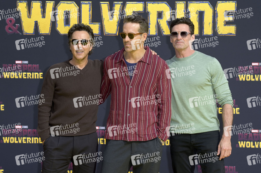 Shawn Levy, Ryan Reynolds und Hugh Jackman beim Fan-Screening des Kinofilms 'Deadpool & Wolverine' im UCI Luxe am Uber Platz. Berlin, 07.07.2024