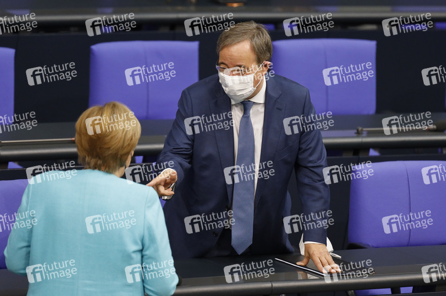 Angela Merkel und Armin Laschet in der 236. Sitzung des Deutschen Bundestages im Reichstagsgebäude. Berlin, 24.06.2021