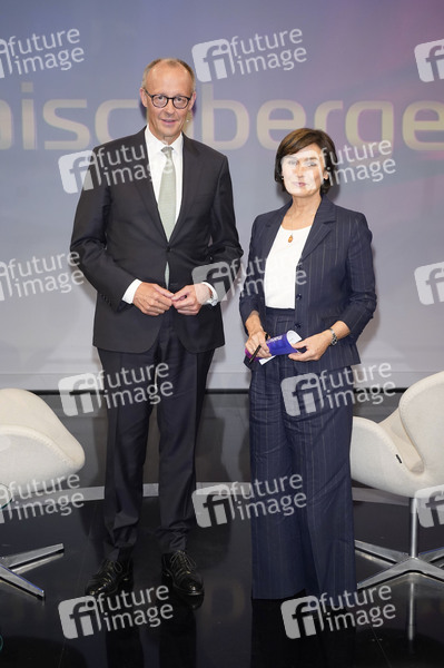 Friedrich Merz und Sandra Maischberger in der ARD-Talkshow 'maischberger' im Studio Berlin Adlershof. Berlin, 01.07.2025