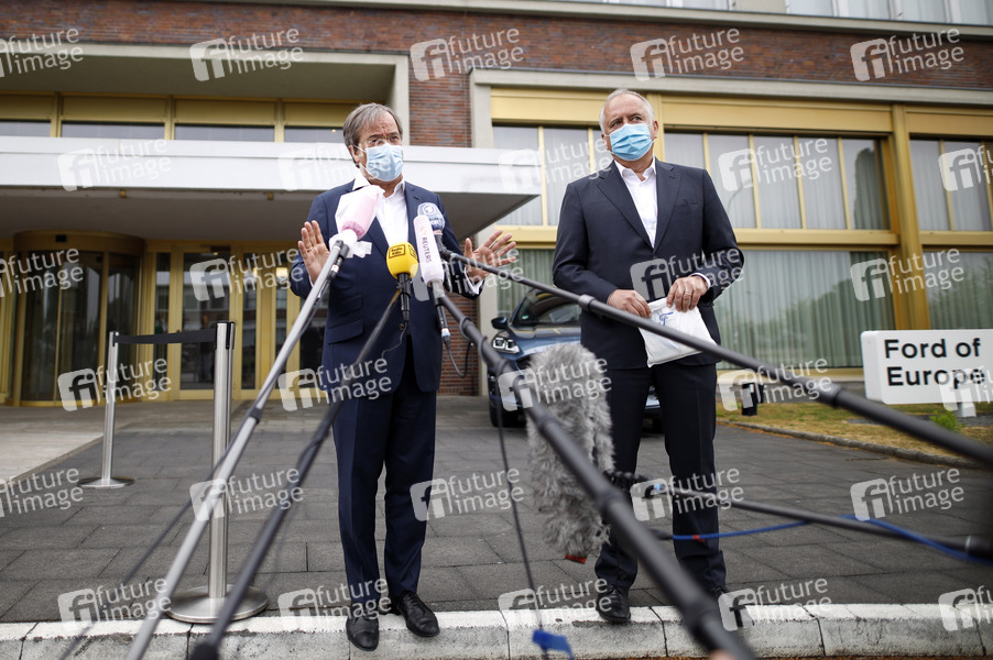 Armin Laschet und Gunnar Herrmann beim Pressestatement im Ford-Werk anlässlich der Wiederaufnahme der Produktion nach den Corona-Einschränkungen. Köln, 04.05.2020