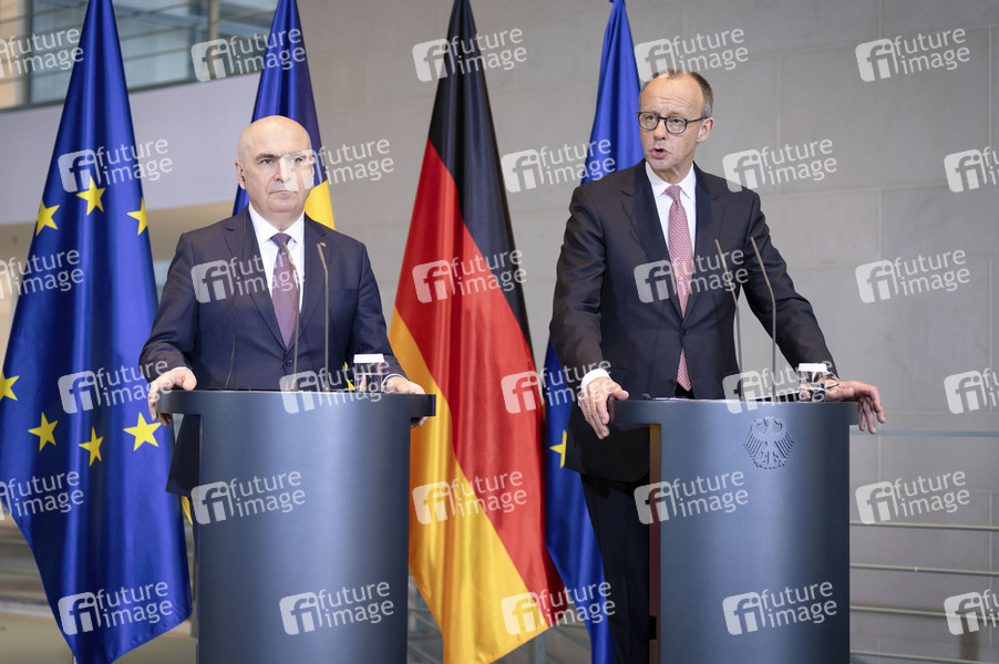 Ilie Bolojan und Friedrich Merz beim Empfang des Ministerpräsidenten von Rumänien zu einem gemeinsamen Gespräch mit anschließendem Pressestatement im Bundeskanzleramt. Berlin, 28.01.2026
