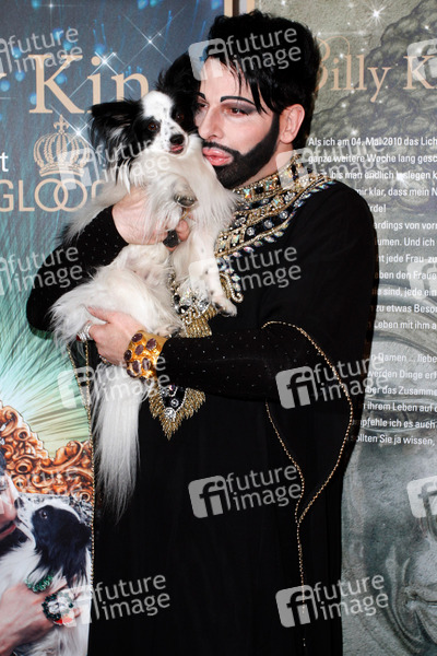 Hund Billy King und Harald Gloeoeckler bei der Buchvorstellung 'Billy King - mein Leben mit Harald Glööckler'. Berlin, 28.02.2013