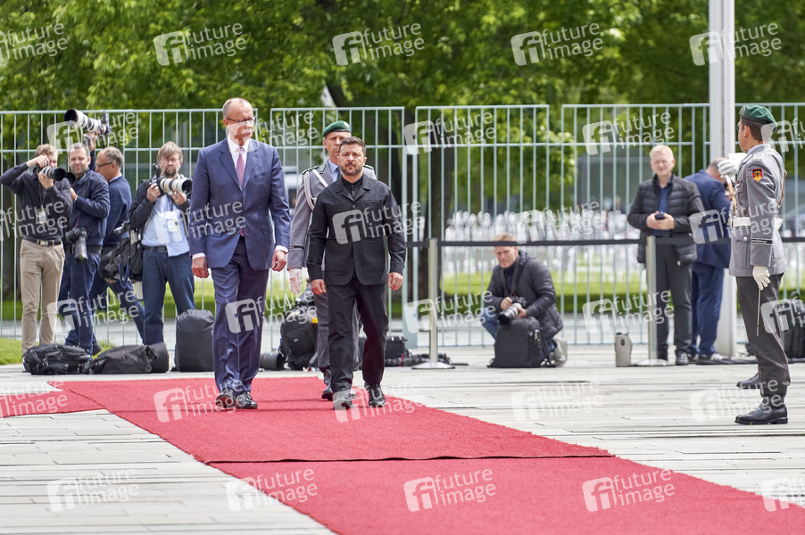 Friedrich Merz und Wolodymyr Selenskyj beim Empfang des Präsidenten der Ukraine mit militärischen Ehren und zu einem gemeinsamen Gespräch mit anschließendem Pressestatement im Bundeskanzleramt. Berlin, 28.05.2025