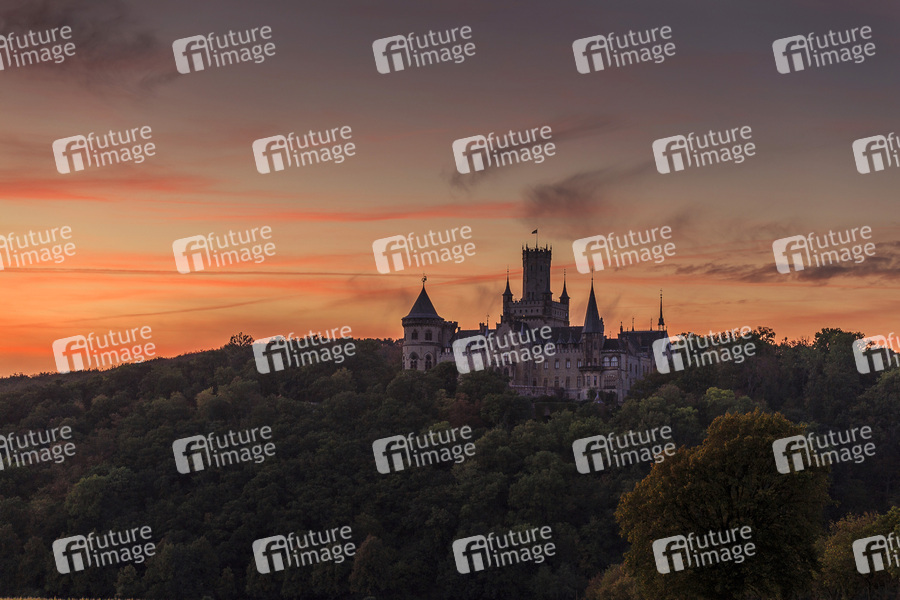 Abendstimmung, Burg, Landschaft, Leuchtende Wolken, Nordstemmen, Schloss, Sonnenuntergang, Landschaft, offizieller Wohnsitz der Prinzen von Hannover, Welfen, Bauzeit 1857-1867, Ernst August von Hannover, Neugotik, Architekt: Conrad Wilhelm Hase, Marienberg