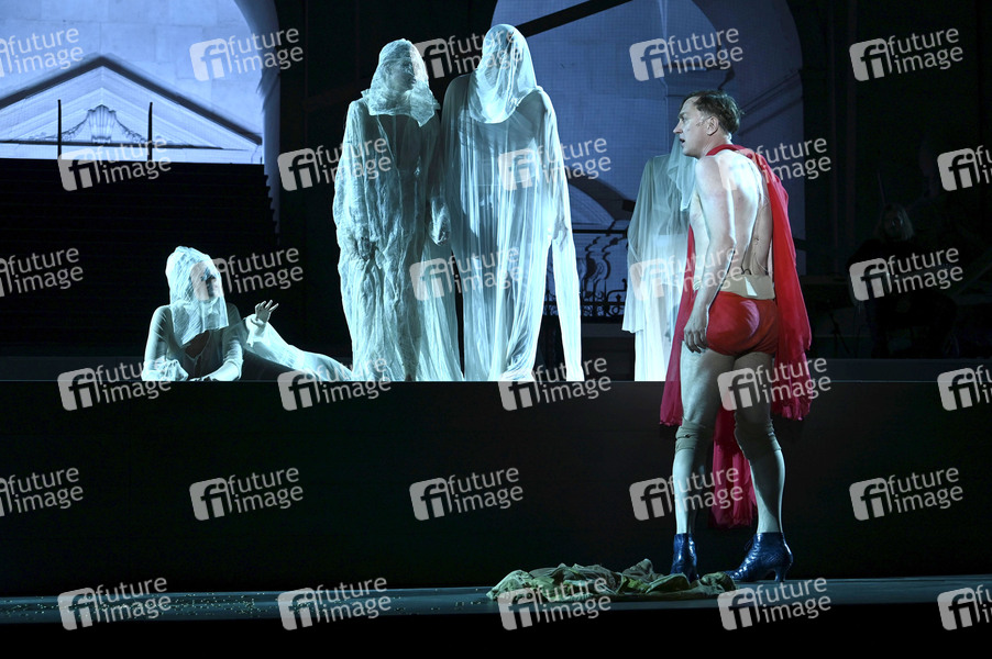 Lars Eidinger bei der Fotoprobe von 'Jedermann - Das Spiel vom Sterben des reichen Mannes' im Rahmen der Salzburger Festspiele auf dem Domplatz. Salzburg, 16.07.2022