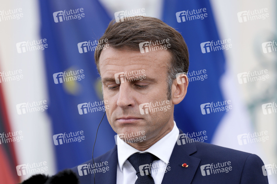 Emmanuel Macron beim Treffen des Deutsch-Französischen Ministerrats im Gästehaus der Bundesregierung Schloss Meseberg. Meseberg, 28.05.2024