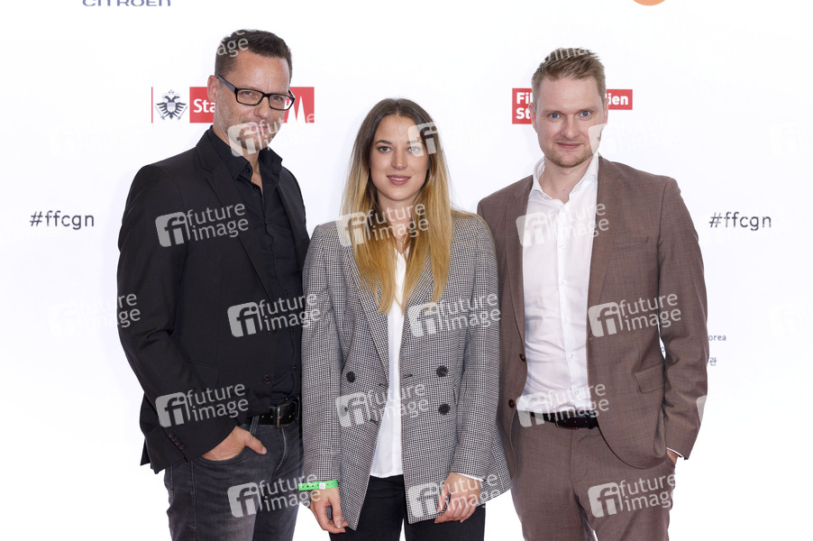 Björn Tanneberger, Franziska Rappl und Jan Strasheim bei der Ankunft zum Panel 'Sport ist unser Leben - Sportdokumentationen als Blick durchs Schlüsselloch' auf dem 29. Film Festival Cologne im Filmpalast. Köln, 16.10.2019