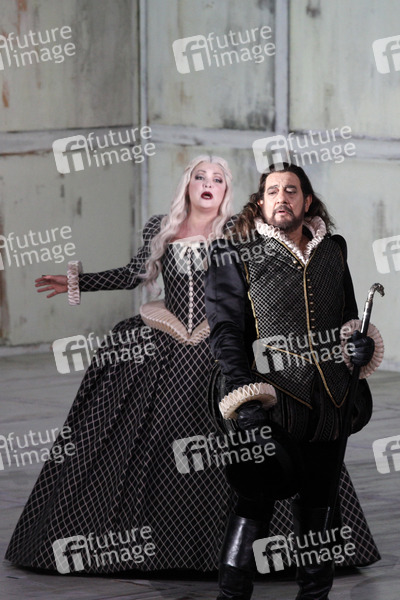 Anna Netrebko (Leonora) und Placido Domingo (Graf Luna) bei der Fotoprobe von Giuseppe Verdis 'Il Trovatore' in der Staatsoper im Schiller Theater. Berlin, 23.11.2013