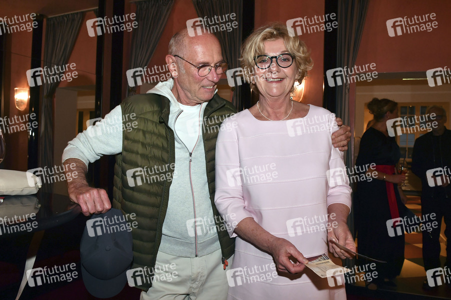 Robert Flörke mit Ehefrau Saskia Vester bei der Premiere des Theaterstücks 'Achtsam morden' in der Komödie im Bayerischen Hof. München, 11.09.2025