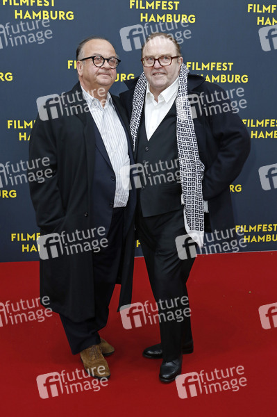 Albert Wiederspiel und Gustav Peter Wöhler bei der Festivaleröffnung mit der Premiere des Kinofilms 'Lovely Day / Mille secrets, mille dangers' auf dem 33. Filmfest Hamburg 2025 im Cinemaxx Dammtor. Hamburg, 25.09.2025
