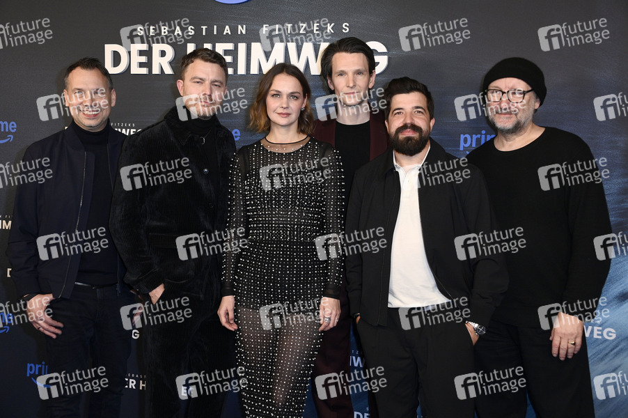 Sebastian Fitzek, Friedrich Mücke, Luise Heyer, Sabin Tambrea, Adolfo J. Kolmerer und Rainer Bock bei der Premiere des Amazon Prime Video Films 'Sebastian Fitzeks Der Heimweg' im Delphi Filmpalast am Zoo. Berlin, 14.01.2025