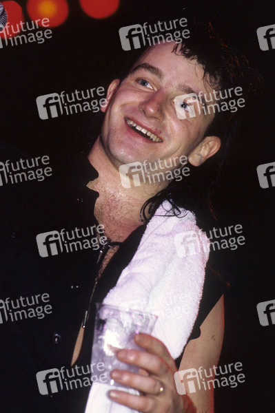 Bono von U2 live bei einem Konzert der 'The Unforgettable Fire'-Tour in der Wembley Arena. London, 14.11.1984
