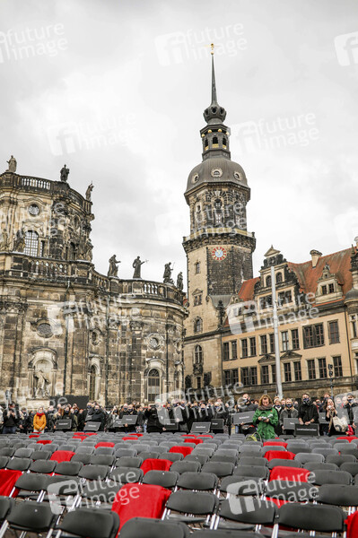1000 leere Stühle bei der Demonstration 'Ohne uns ist Stille' der Organisation 'Leere Stühle' auf dem Theaterplatz in der historischen Dresdner Altstadt. Künstler, Veranstalter und Unternehmen der Veranstaltungsbranche wie Caterer und Techniker demonstrieren gemeinsem, um auf die Probleme und Wichtigkeit ihrer Branche aufmerksam zu machen. Dredsen, 05.06.2020