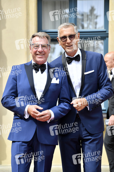 Patrick Lindner mit Ehemann Peter Schäfer bei der Eröffnung der Richard-Wagner-Festspiele 2024 mit der Premiere von Richard Wagners 'Tristan und Isolde' im Bayreuther Festspielhaus. Bayreuth, 25.07.2024