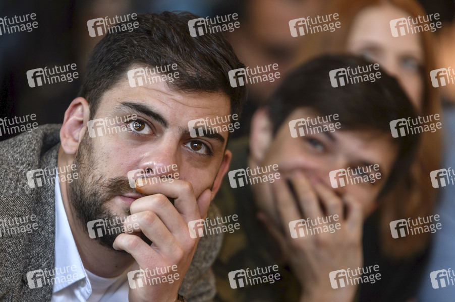 Milan Maric (Serbien) und Dawid Ogrodnik (Polen) bei der Präsentation der European Shooting Stars 2019 auf der Berlinale 2019 / 69. Internationale Filmfestspiele Berlin in der Audi Berlinale Lounge. Berlin, 09.02.2019