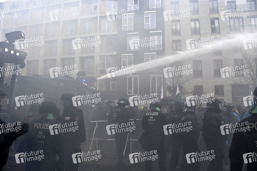 Tausende Demonstranten protestieren am Brandenburger Tor und im Regierungsviertel gegen die Corona-Politik der Regierung. Wegen der massenhaften Verstöße gegen die Hygieneauflagen hat die Polizei die Proteste unter Einsatz von Wasserwerfern beendet. Berlin, 18.11.2020