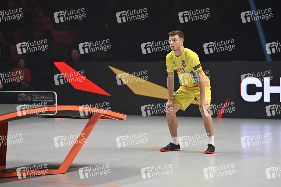 Apor Gyorgydeak (Rumanien) beim Man Single Finale Rumanien vs Polen bei der Teqball Weltmeisterschaft 2022 in der Kia Metropole Arena. Nürnberg, 27.11.2022
