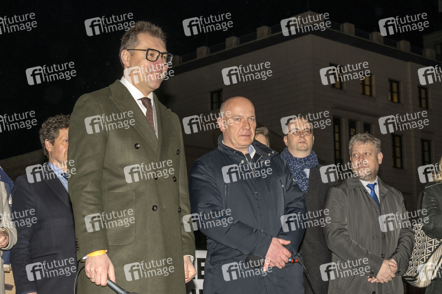 Oleksii Makeiev / Oleksij Makejew und Kai Wegner. Anlässlich des dritten Jahrestages des Beginns des Krieges von Russland gegen die Ukraine versammelten sich mehrere tausend Menschen zu einer Solidaritätsdemonstration. Der Zug führte vom Lustgarten zum Brandenburger Tor in Berlin-Mitte. Berlin, 24.02.2025