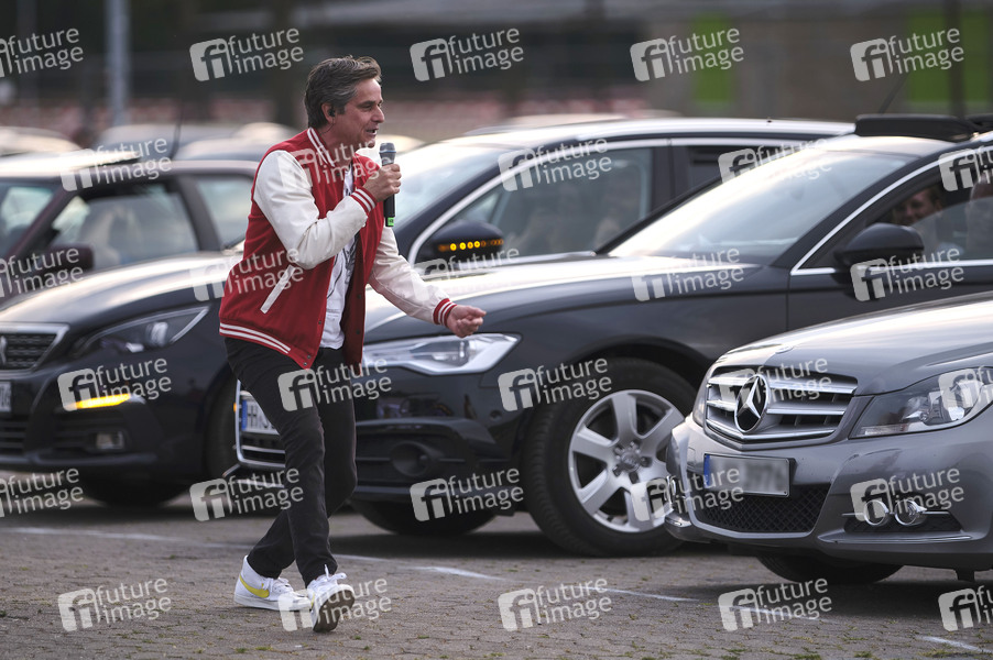 Sänger, Band, Rock, Auftritt, Bühne, Stage, live, Unterhaltung, Entertainment, Kultur, Corona, Sars-CoV-2, Covid-19, Coronavirus, Coronakrise, Corona-Krise, Corona-Pandemie, Coronamaßnahmen, Corona-Schutz, Kontaktverbot, Mindestabstand, Social Distancing, Abstand, Abstandhalten, Abstandsregel, Auto, Autokonzertreihe