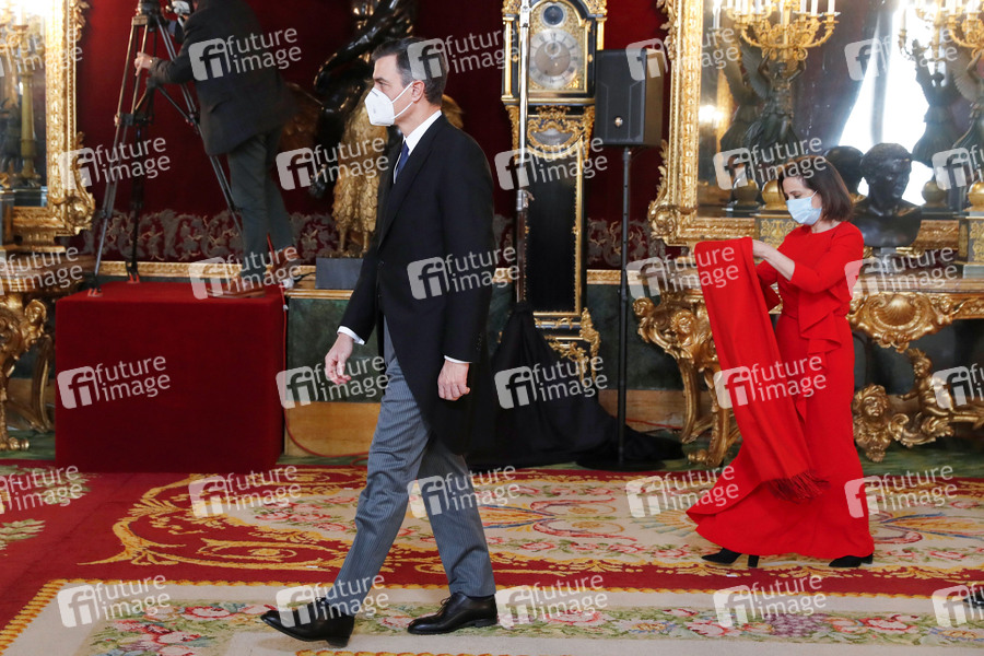 Pedro Sanchez und Margarita Robles bei der Militärzeremonie 'Pascua Militar' im Palacio Real. Madrid, 06.01.2021