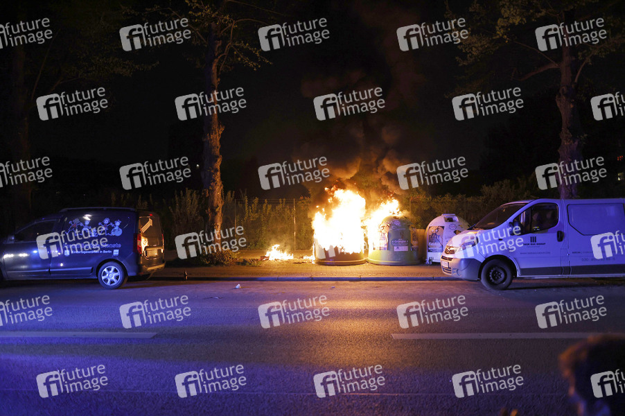 Revolutionäre 1. Mai Demonstration in Neukölln. Bei bei der linksradikalen 1.-Mai-Demo am Abend kommt es zu Ausschreitungen. Demonstranten attackieren Polizisten mit Steinen, Flaschen und Böllern, mehrere Beamte werden verletzt, es kommt zu 240 Festnahmen. Berlin, 01.05.2021