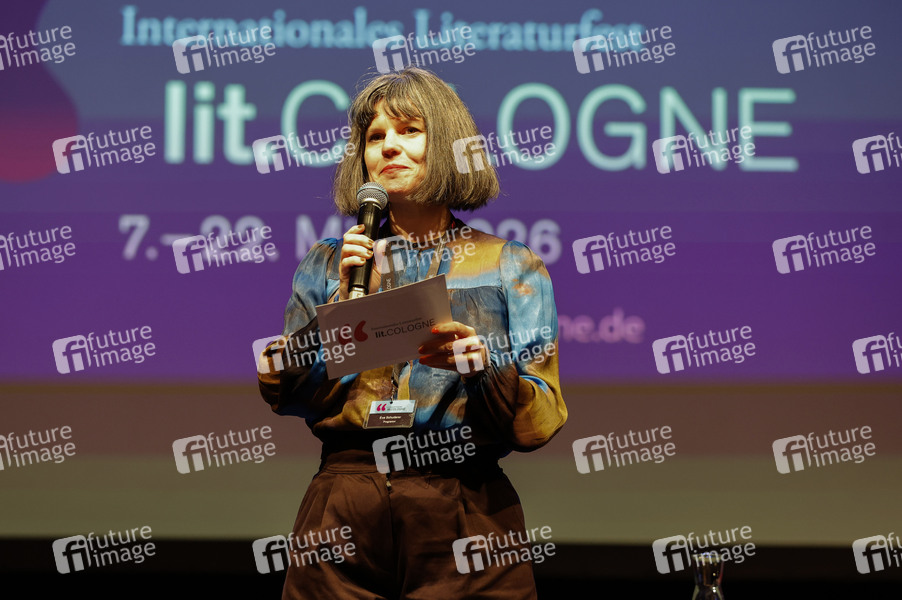 Eva Schuderer bei der lit.Cologne 2026 Veranstaltung 'Ohne uns geht nix! Remix 7 rettet mit Annette Frier und Michael Kessler die Demokratie'in der Stadthalle Köln. Köln, 14.03.2026