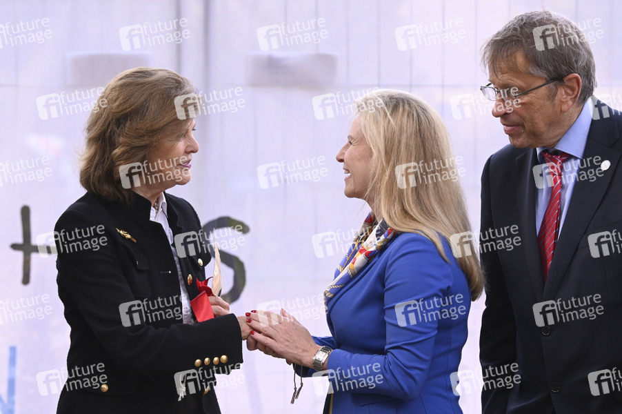 Silvia von Schweden, Astrid Lurati und Heyo K. Kroemer beim feierlichen Spatenstich zum Childhood-Haus Berlin an der Charité. Berlin, 19.09.2024