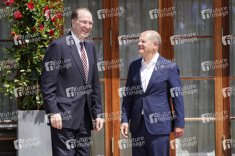 David Malpass beim Fototermin zum erweiterten Familienfoto im Rahmen der Outreach-Arbeitssitzung am zweiten Tag des G7-Gipfels auf Schloss Elmau. Die Staats- und Regierungschefs der G7-Gruppe kommen offiziell unter dem Motto 'Fortschritt hin zu einer gerechten Welt' zusammen und werden globale Themen wie Krieg, Klimawandel, Hunger, Armut und Gesundheit diskutieren. Der Gipfel wird vom anhaltenden russischen Krieg gegen die Ukraine überschattet. Klais, 27.06.2022