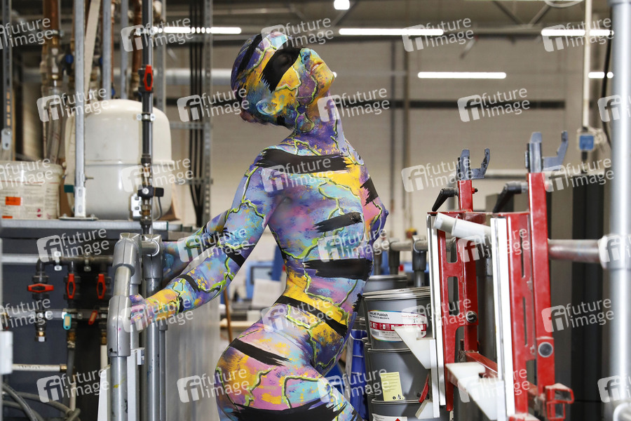 Jörg Düsterwald, einer der bekanntesten Bodypainting- und Bodyartkünstler Deutschlands macht auf seine ganz eigene Art auf die prekäre Situation freischaffender Künstler während der Corona-Pandemie aufmerksam: Unter dem Hashtag #WirzeigenFarbe hat der Hamelner Künstler in der Produktionshalle der Druckerei QUBUS media mit seinem Model Lisa ein ausdruckstarkes Live-Bodypainting inszeniert - denn Künstlerinnen und Künstler wie er sehen und fühlen sich derzeit wortwörtlich 'ausgezogen bis aufs letzte Hemd'. Und nichts symbolisiert diesen bekannten Spruch besser als ein Bodypainting auf nackter Haut in einer Umgebung, in der es jeden Tag um Farbe geht. Die Live-Performance fand mit dem zeitgleichen Druckstart von Jörg Düsterwald's neuem Premiumkalender 'Bodypainting in Nature 2021' statt. Hannover, 14.07.2020