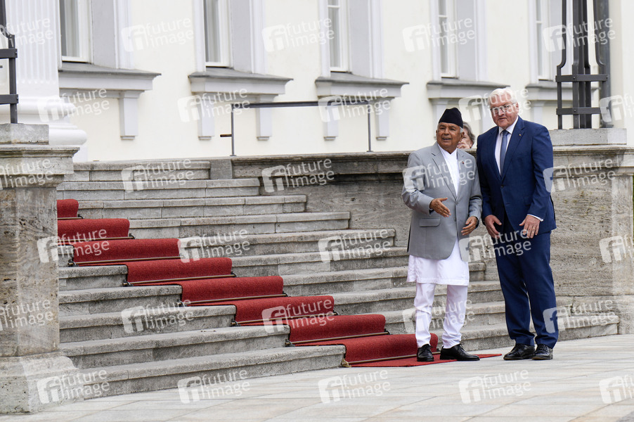 Ram Chandra Paudel und Frank-Walter Steinmeier beim Empfang des Präsidenten von Nepal mit militärischen Ehren im Schloss Bellevue. Berlin, 17.06.2024