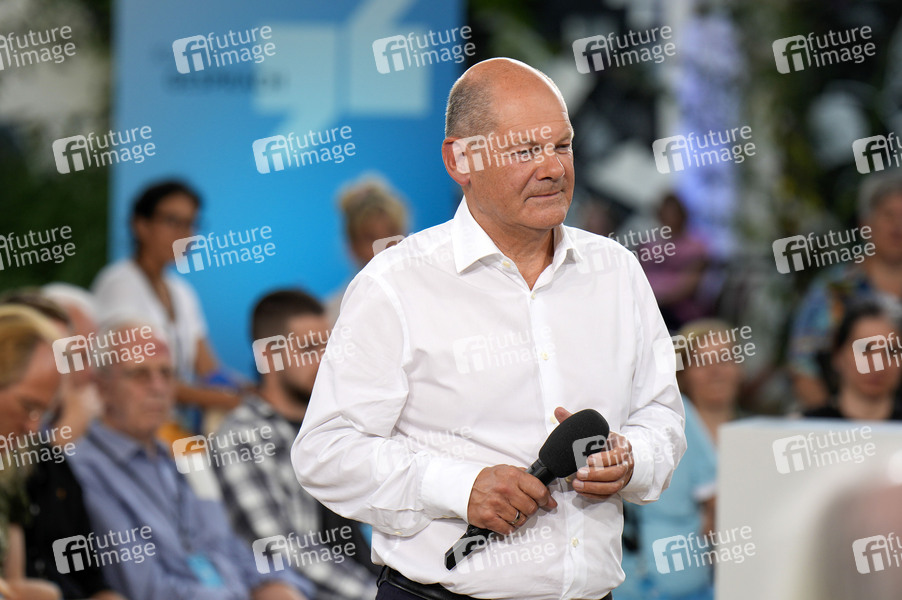 Olaf Scholz beim Kanzlergespräch mit Bürgern in der ufaFabrik. Berlin, 04.09.2024