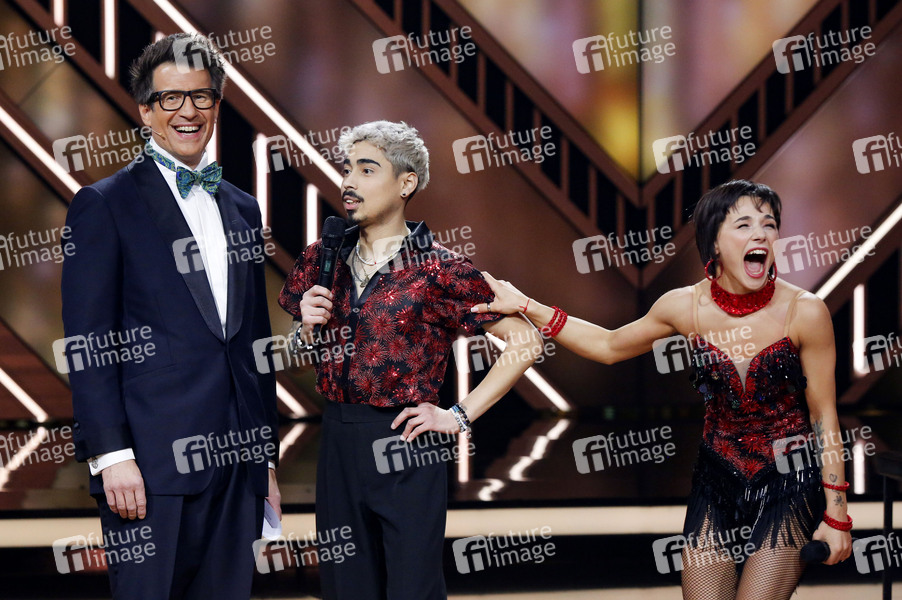 Daniel Hartwich, Tony Bauer und Anastasia Stan in der ersten Live-Show der 17. Staffel der RTL-Tanzshow 'Let's Dance' im MMC Coloneum. Köln, 01.03.2024