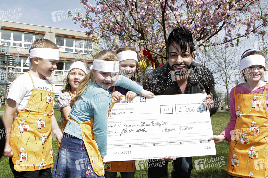 Scheckübergabe von Harald Glööckler an das Deutsche Kinderhilfswerk und den Babel e.V. in Hellersdorf, Berlin