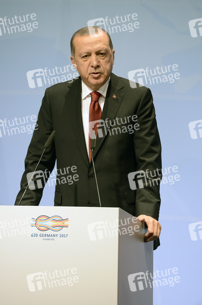 Recep Tayyip Erdogan bei einer Pressekonferenz auf dem G20-Gipfel. Hamburg, 08.07.2017