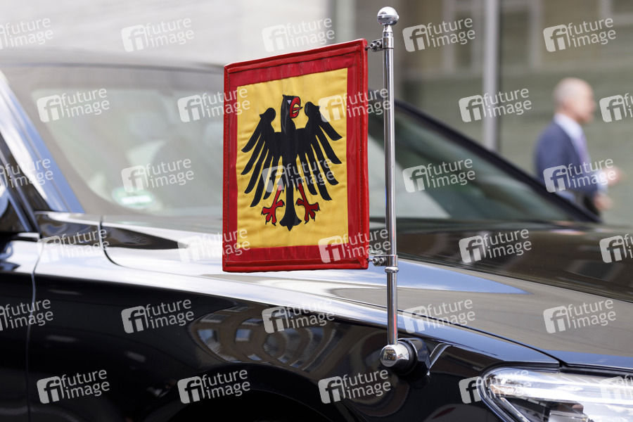 Standarte des Bundespräsidenten an der Dienstlimousine beim Besuch des Bundespräsidenten im Kunstmuseum Kolumba. Köln, 27.09.2019