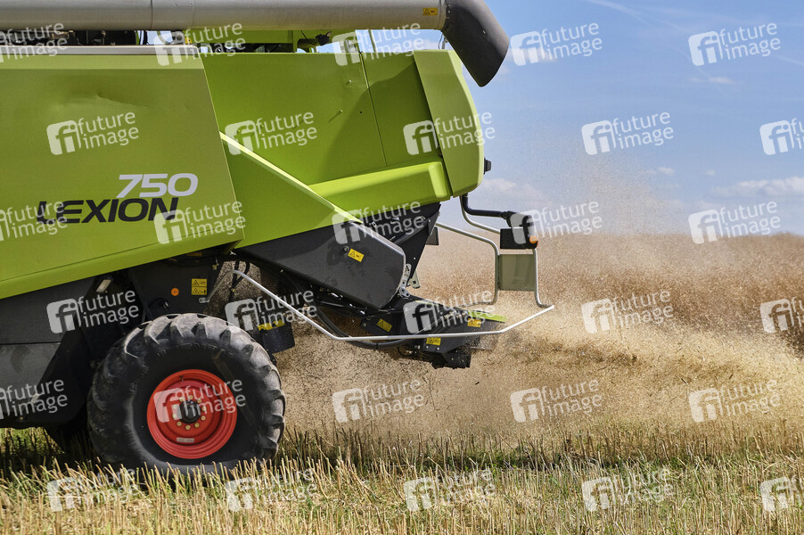 Claas Lexion 750, Erntemaschine, Frontsichelmäher, Nutzfahrzeug, Präzisionslandwirtschaft, Landwirtschaft, Ackerbau, Raps, Halme, Feld, Landwirtschaft, Dürre, Trockenheit, Wasser, Regen, Grundwasser, Wasserknappheit, Grundwasserspiegel, Grundwasserpegel, Trockenphase, Ernte, Ernten, Landwirte, Bauern, Acker, Äcker, Agrar, Agrarwirtschaft, Erntewetter, Ernteausfall, Ernteausfälle, Futterkrise, Missernte, Futter, Saat, Saatgut, Anbau, Fruchtbarkeit, Bauern, Bauernverband, Anbau, Bio, Dünger, Symbolbild, Symbolfoto