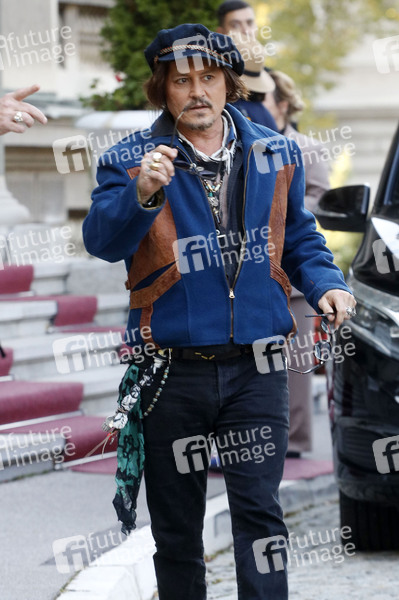 Johnny Depp nach dem Empfang bei Präsident Aleksandar Vucic anlässlich der ersten in Serbien produzierten Zeichentrickserie 'Puffins' im Gebäude des Generalsekretariats des Präsidenten der Republik Serbien. Belgrad, 19.10.2021