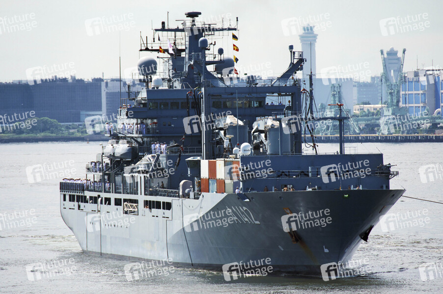 Ankunft vom Einsatzgruppenversorger der Deutschen Marine A1412 Frankfurt am Main am Tokyo International Cruise Terminal. Tokio, 20.08.2024
