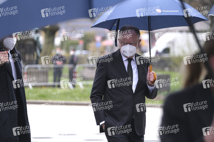 Stephan Weil bei einer Gedenkzeremonie für die Verstorbenen in der Corona-Pandemie vor der Nikolaikapelle an der Goseriede. Hannover, 18.04.2021