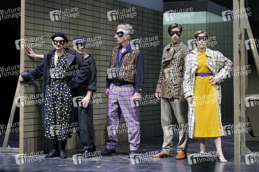 Milan Peschel, Martin Wuttke, Bernd Moss, Jeremy Mockridge und Judith Hofmann bei der Fotoprobe zum Theaterstück '(Life on earth can be sweet) Donna' im Deutschen Theater. Berlin, 13.12.2019