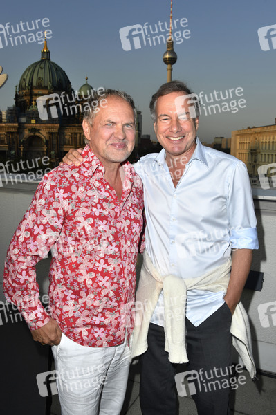 Uwe Ochsenknecht und Nico Hofmann beim Vorab-Empfang UFA Filmnächte 2019 auf der Dachterrasse der Bertelsmann-Repräsentanz. Berlin, 21.08.2019