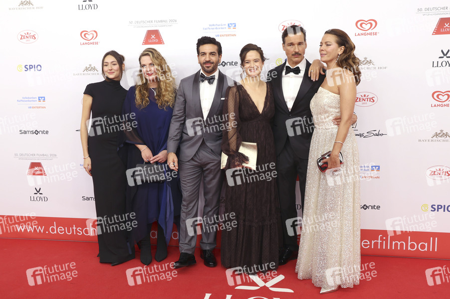 Emily Kusche, Diana Amft, Elyas M'Barek, Lena Schömann, Florian David Fitz und Jessica Schwarz beim 50. Deutschen Filmball 2026 im Hotel Bayerischer Hof. München, 24.01.2026
