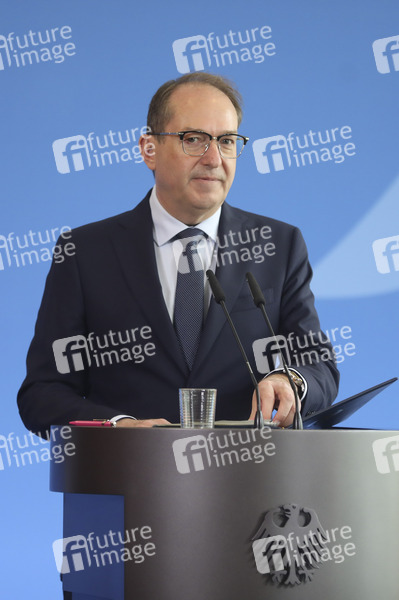 Alexander Dobrindt bei einem Pressestatement zu Beschlüssen des Bundeskabinetts im Bundesministerium des Innern. Berlin, 28.05.2025