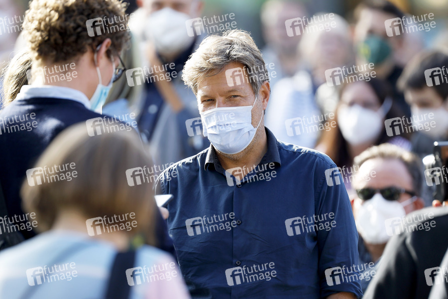 Robert Habeck redet bei einem Wahlkampf-Auftritt für die Kölner Grünen auf dem Heumarkt. Köln, 22.09.2021